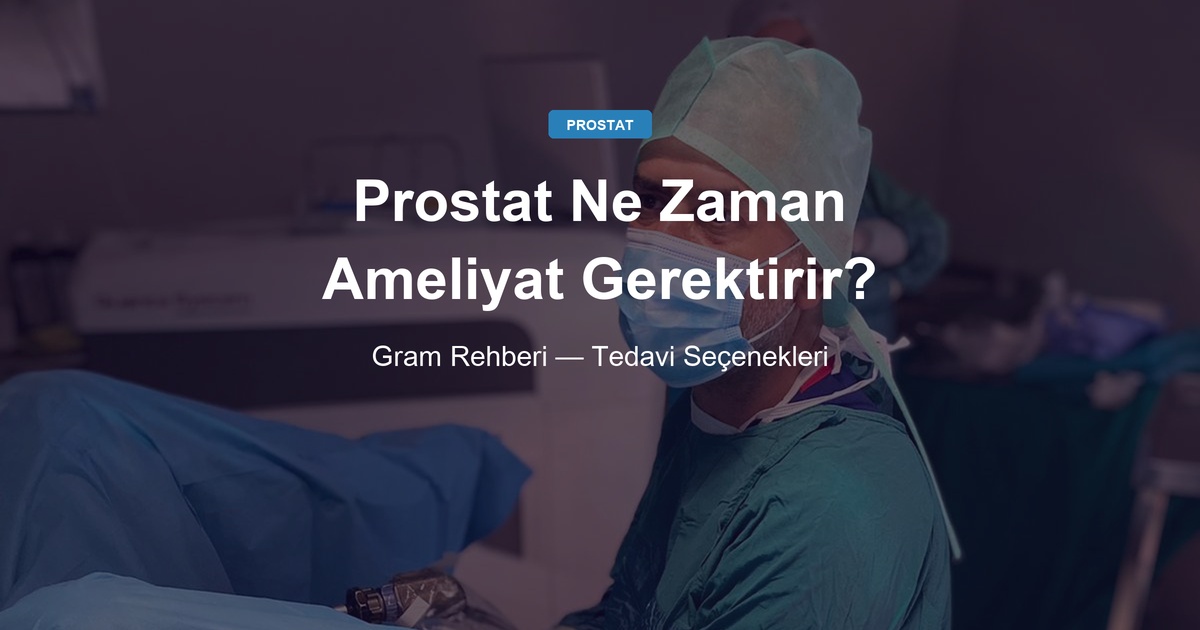 “Prostat kaç gram olursa ameliyat gerekir?” sorusunun tek bir rakamla cevaplanması mümkün değildir. Ameliyat kararı; prostat boyutu, belirtilerin şiddeti, ilaç tedavisine yanıt, komplikasyonların varlığı ve hastanın genel durumu gibi birçok faktörün birlikte değerlendirilmesiyle verilir.